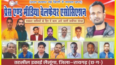 भारत सम्मान, रायगढ़/लैलूंगा – प्रेस एंड मीडिया वेलफेयर एसोसिएशन छत्तीसगढ़ के राष्ट्रीय अध्यक्ष मनोज पांडेय के मार्गदर्शन व कार्यकारी प्रदेश…