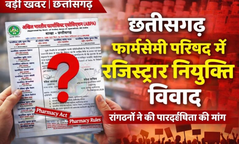 छत्तीसगढ़ फार्मेसी परिषद में रजिस्ट्रार नियुक्ति को लेकर विवाद गहराया, फार्मासिस्ट संगठनों ने उठाई पारदर्शिता की मांग