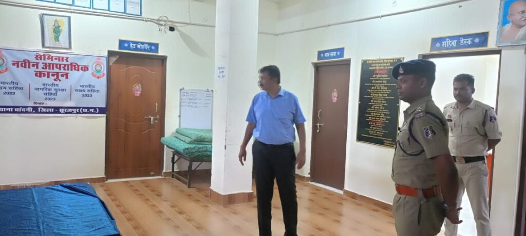 डीआईजी व एसएसपी सूरजपुर अचानक रात्रि निरीक्षण करने पहुंचे दुरस्थ थाना चांदनी