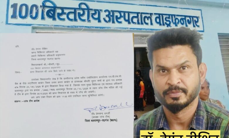 इस पत्र के आधार पर जिला बलरामपुर-रामानुजगंज के मुख्य चिकित्सा एवं स्वास्थ्य अधिकारी द्वारा 3 अक्टूबर 2025 को जांच के आदेश जारी किए गए (पत्र क्रमांक 2442)। जांच टीम का नेतृत्व डॉ. प्रेमचंद बनर्जी को सौंपा गया।