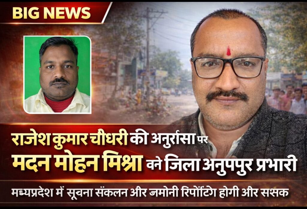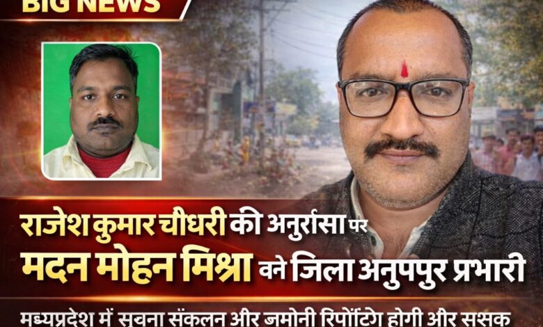 अनुशंसा पर मदन मोहन मिश्रा को जिला अनूपपुर की जिम्मेदारी