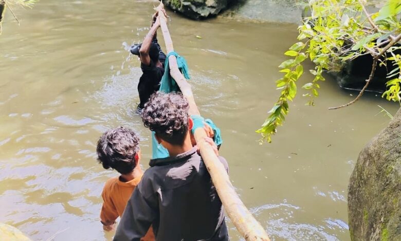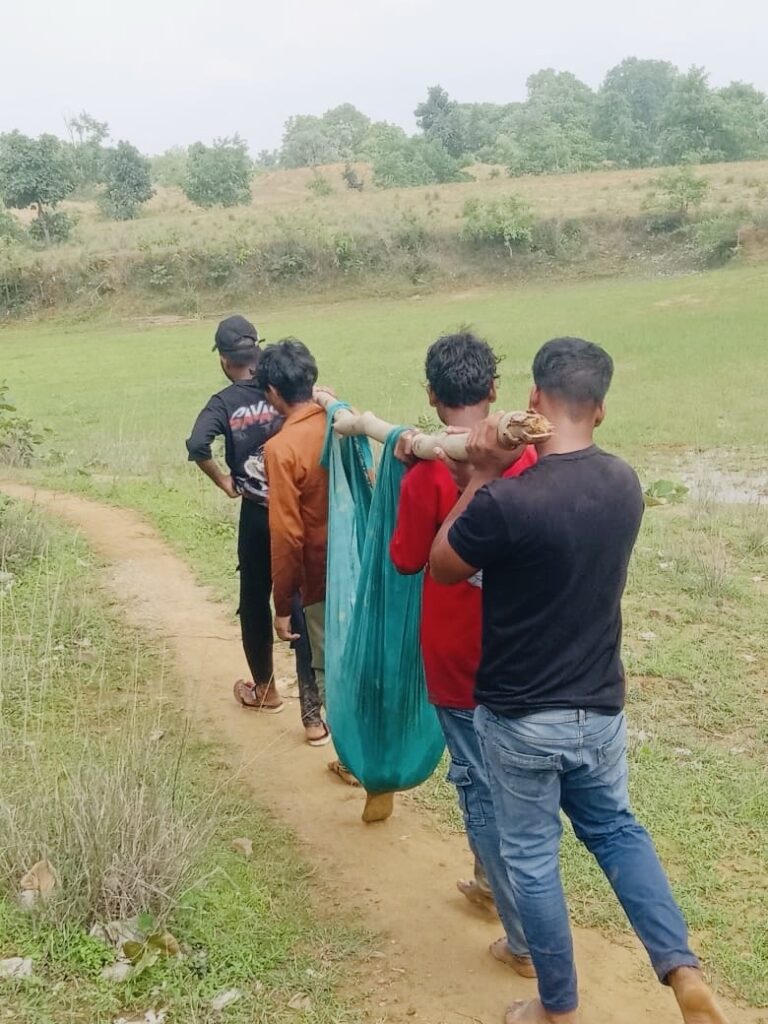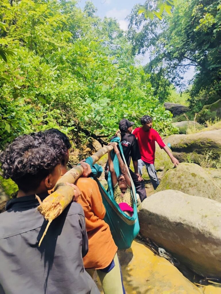 लकड़ी-साड़ी से बना स्ट्रेचर, फिर पैदल संघर्ष